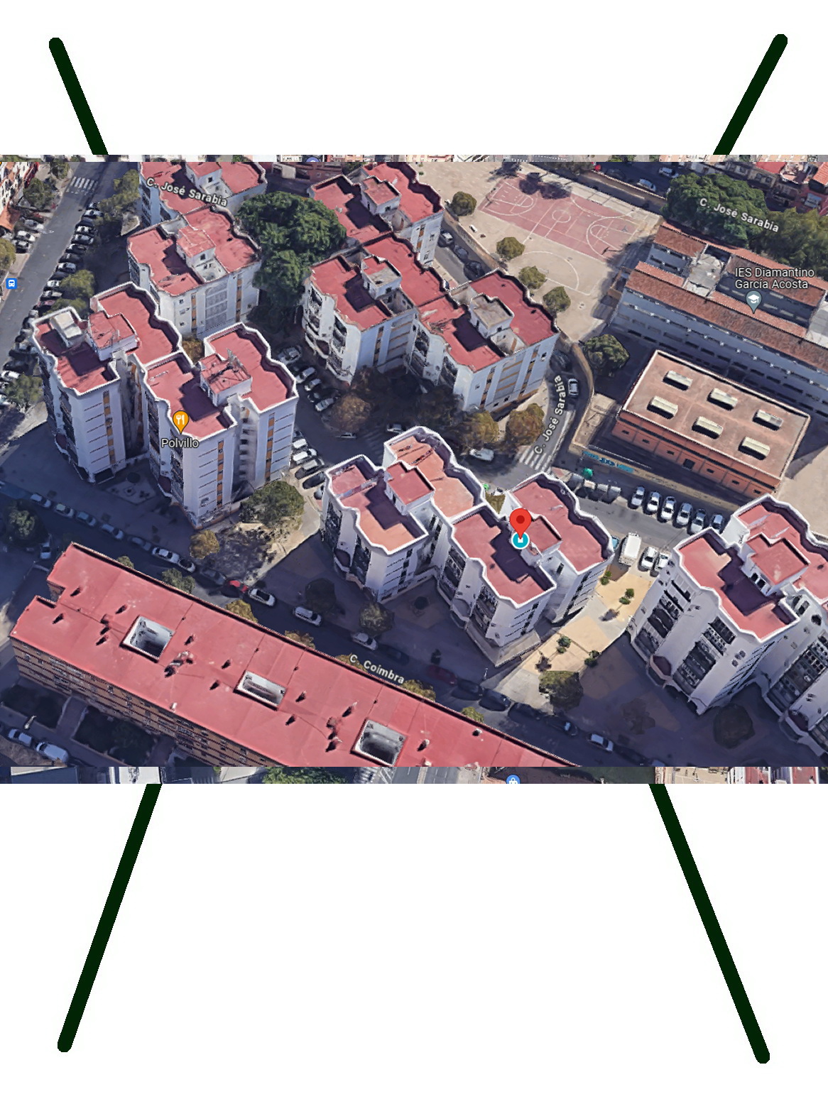 La casa da a 3 orientaciones diferentes. Dos dormitorios y el salon dan a la terraza que da a la calle Coimbra, el baño y la cocina dan la zona peatonal que rodea el edficio, y un dormitorio da directo a la calle.